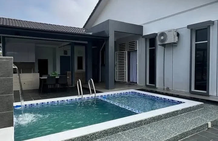 Wow 😱 unit FREEHOLD dan corner lagi. Rumah package sekali kolam renang lagi sangat cantik