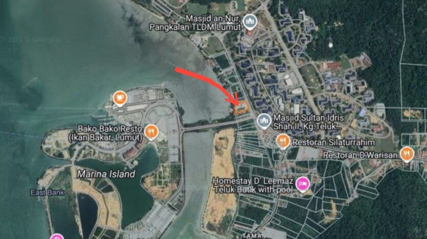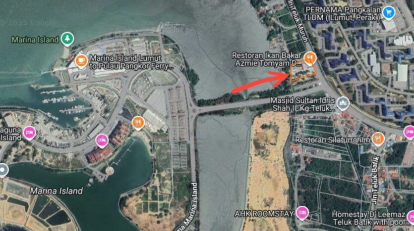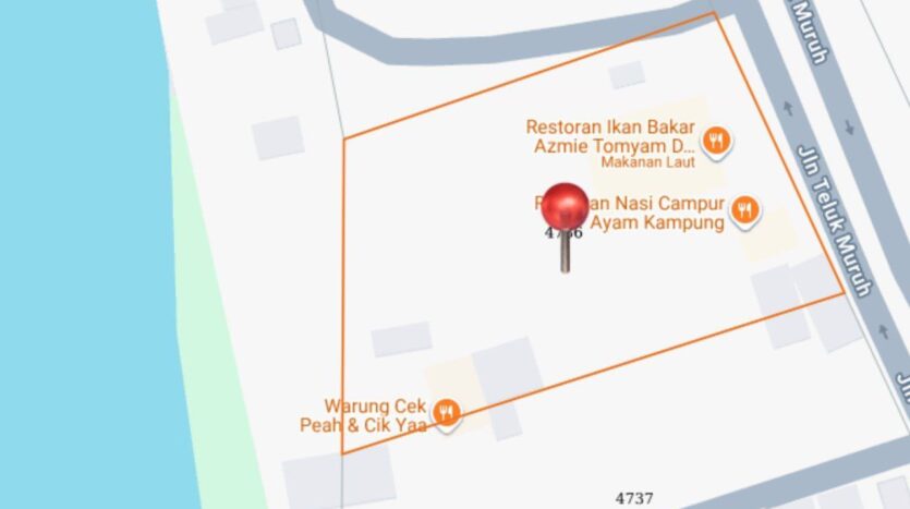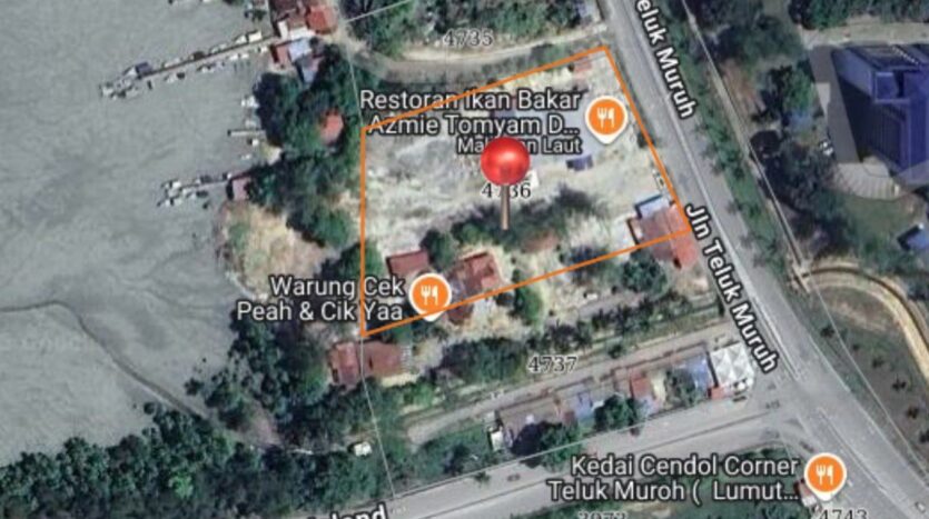 Tanah lot tepi jalan utama Teluk Muruh, Lumut. Berdepan dengan kuaters Navy. Ada Restoran Ikan Bakar dalam kawasan tanah yang masih beroperasi.