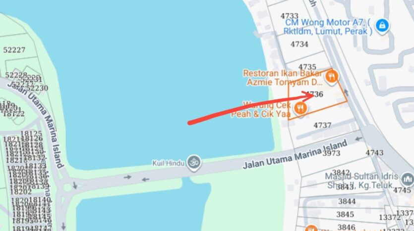 Lokasi tanah sangat strategik berdekatan dengan Marina Island dan tepi laut.